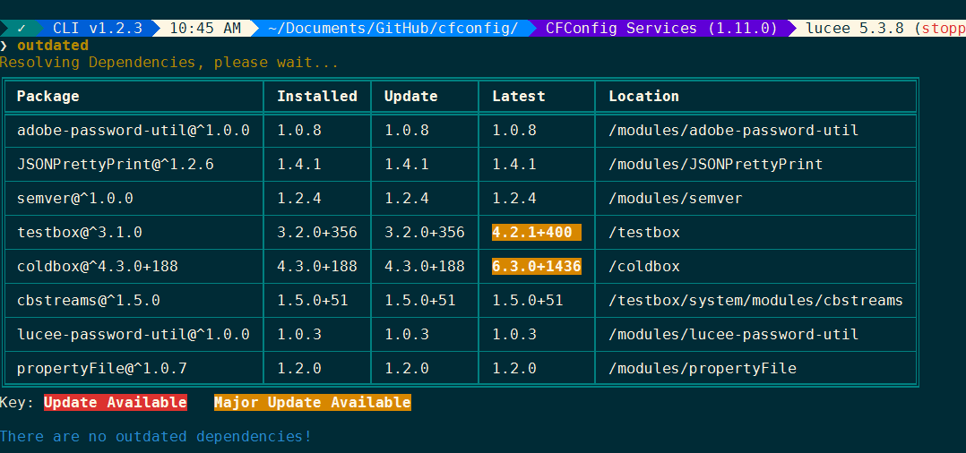 We are pleased to announce the general availability of our latest CommandBox CLI release. This is a minor release that's full of bug fixes and enhancements. It should be backwards compatible (with two caveats below) and you can upgrade any previous version of CommandBox in-place to the latest release.