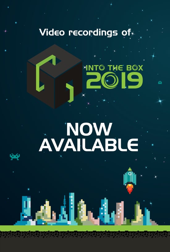 We are so excited to finally announce our video recordings for Into The Box 2019! You can now get this video collection or individual recordings from our vimeo page: https://vimeo.com/ondemand/itb2019. Over 23 hours of instructional videos at your disposal! Enjoy!