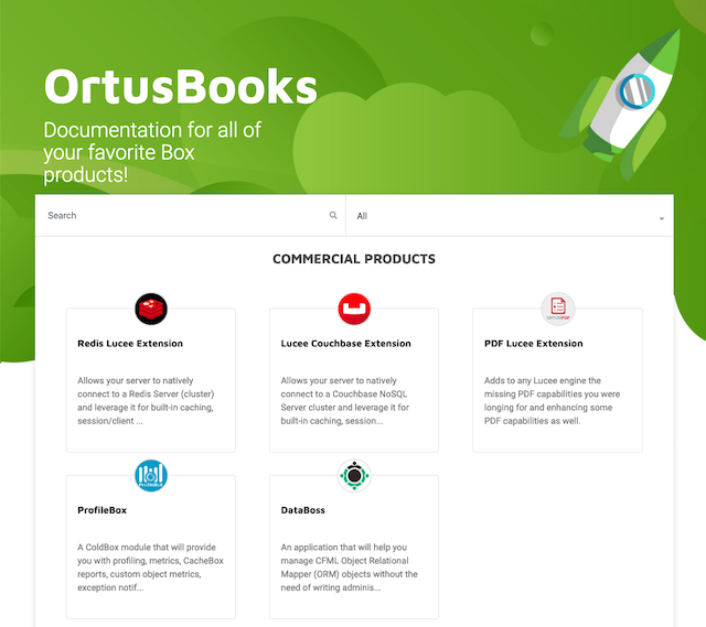 We are so excited to have launched our first intiative to glue together all of our documentation for all of our Ortus products: www.ortusbooks.com. In this new site, you will find the ability to search for the documentation or API docs that you need. One resource, one location, one way to reach any of our docs!