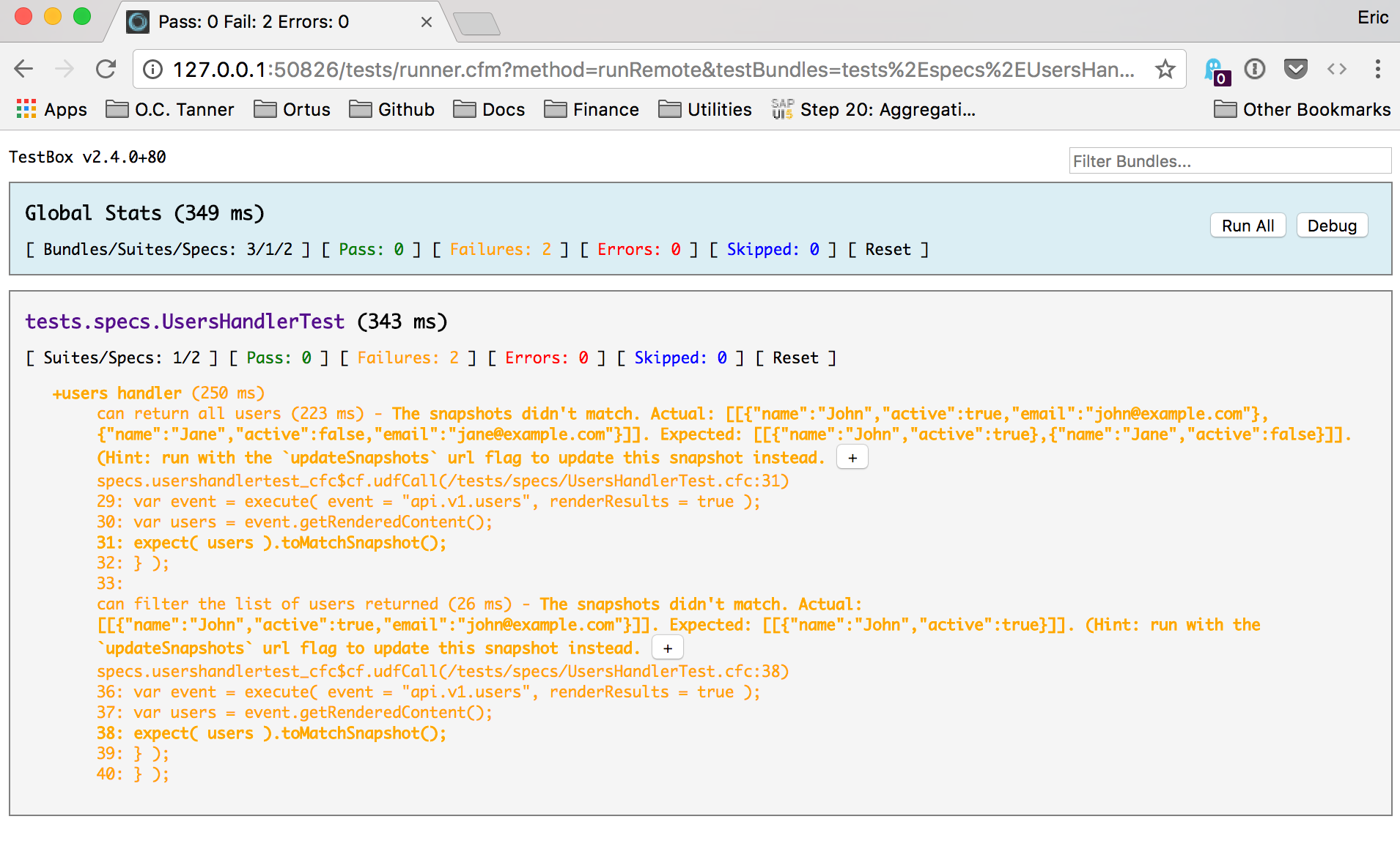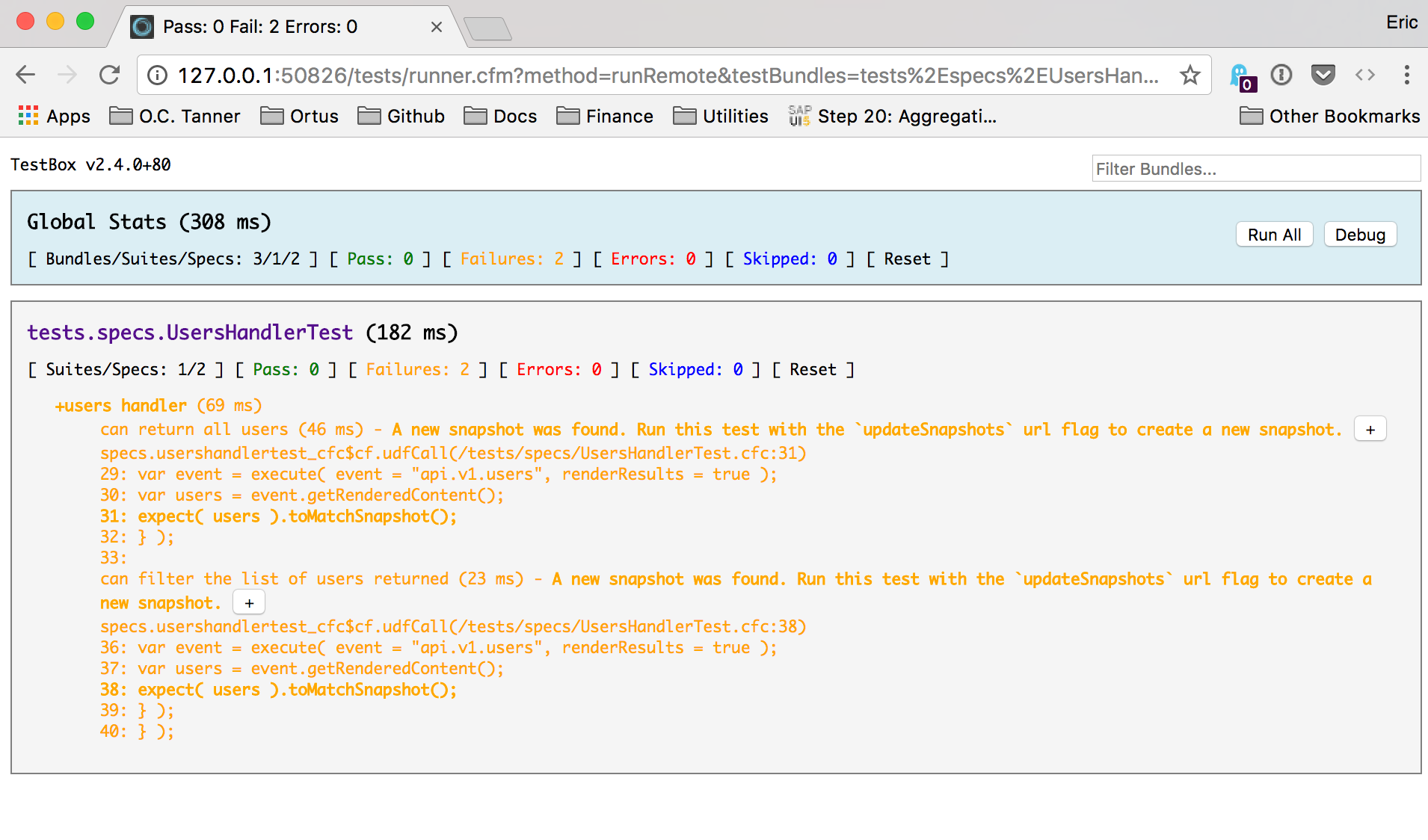 Want more information on snapshot testing with TestBox? You can check out my own blog post about the subject, or Jason Steinshouer's two-part series on the topic (here and here).