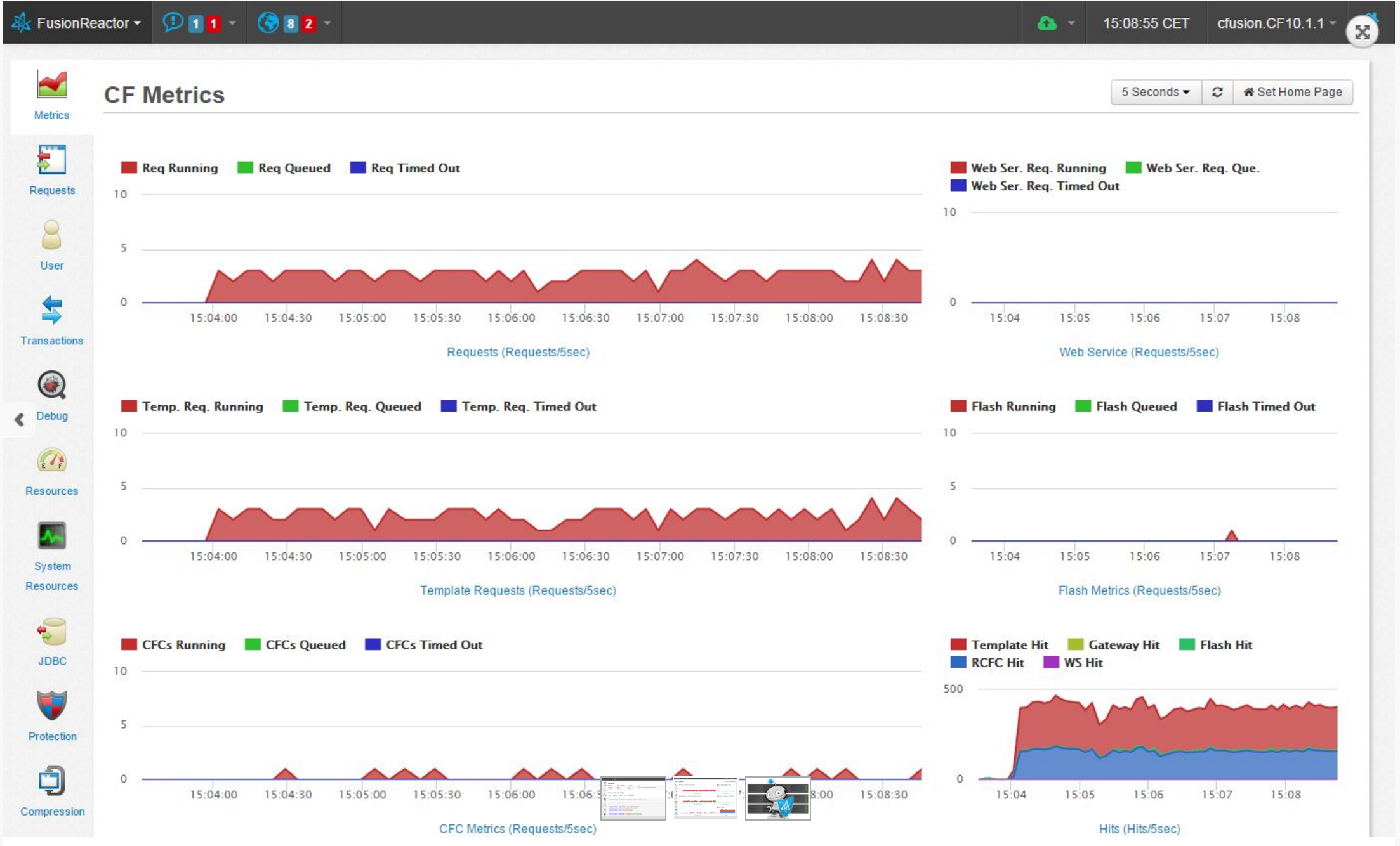 No other tool gives you the same level of detail, with over 40 specific ColdFusion real-time metrics, including active sessions, number of current sessions, app scope size, hit counts, DB pool stats (detailed metrics for DSN’s) + much more. ColdFusion Metrics are available for ColdFusion 8, 9, 10, 11 and CF2016.